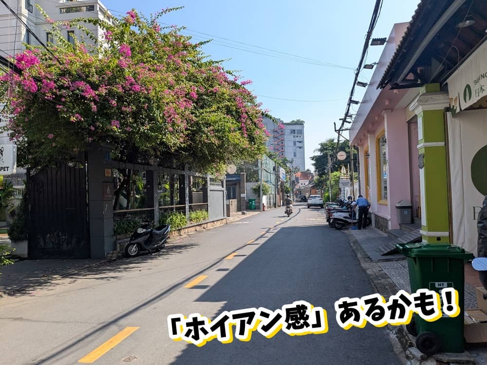 ちょっとヘム(裏路地)に入ると、素敵なヴィラが立ち並んでいて、外壁にはブーゲンビリアが咲いていたり、ホイアンを思わせる落ち着いた雰囲気もあり、1区のオシャ感とはまた違う、街歩きにも楽しいエリアでした。