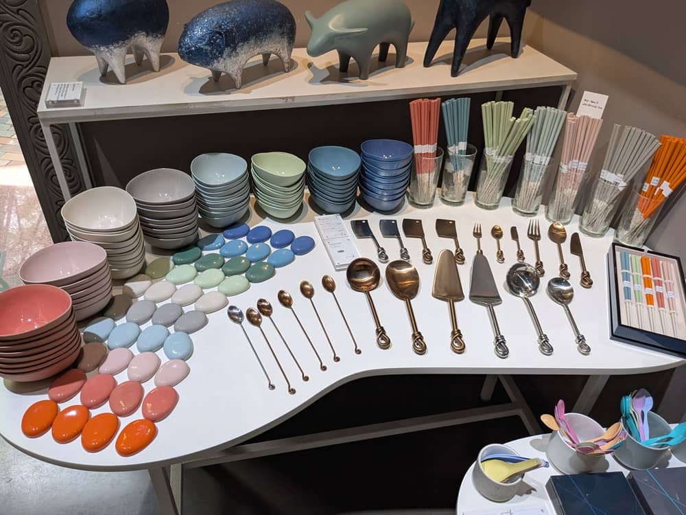 大きなショップではないですが、モダンなデザインの食器、テーブルグッズ、ココナッツコスメ、オリジナルキャンドル、バッファローボーンのアクセサリーなど大人な女性に刺さる小物・雑貨がズラリ!