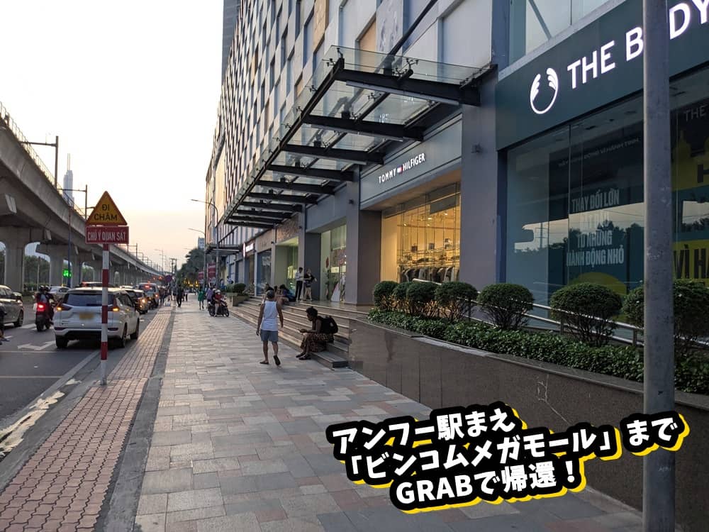 ちなみに「アンフー駅」・「タオディエン駅」どちらに戻っても、さほど距離は変わりませんが、アンフー駅の目の前には巨大な「ビンコムメガモール」があり、スーパーやレストラン街も入ってるので、「ベターな食事(チェーン店など)でいいや」って人にはそちらに向かうのもありだと思います。